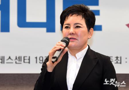 송영선 전 의원이 11일 오후 서울 중구 프레스센터에서 열린 ‘대한민국 어디로 가고있는가?’ 기자회견에 참석해 발언을 하고 있다.