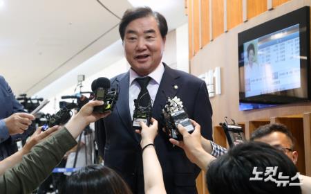 이석현 전 국회부의장이 11일 오후 서울 서대문구 신촌세브란스 병원 장례식장에 마련된 고 이희호 여사의 빈소로 찾아 조문한 뒤 애도의 뜻을 표하고 있다.