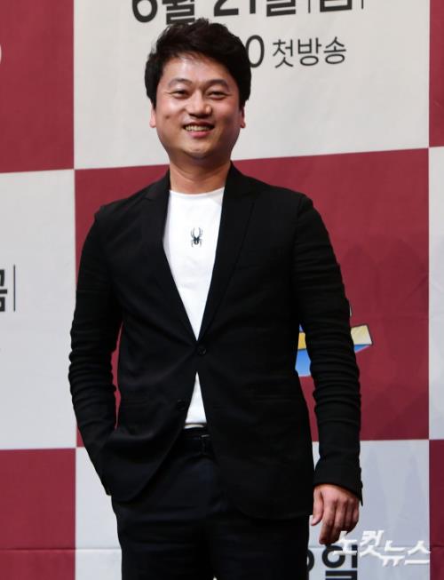 축구해설가 박문성이 21일 오후 서울 구로구 라마다 신도림 호텔에서 열린 KBS2 예능 프로그램 ‘으라차차 만수로’ 제작발표회에 참석해 포즈를 취하고 있다.