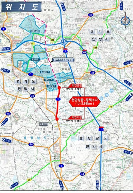 천안 성환~평택 소사 국도1호선 우회도로 위치도. (사진=천안시 제공)