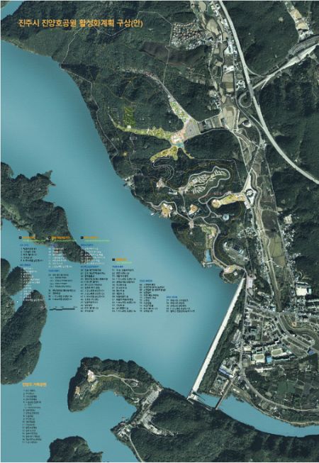시는 진양호 일대를 원더풀 남강과 함께 하는 레저·문화공간인 진양호 근린공원, 수려한 호수경관과 힐링이 함께 하는 진양호반 둘레길, 사랑하는 가족과 진양호 노을이 함께 하는 진양호 가족공원 등 3개 사업으로 나누어 테마 별 문화가 함께하는 진양호 친환경 레저 힐링 문화공간으로 조성한다.