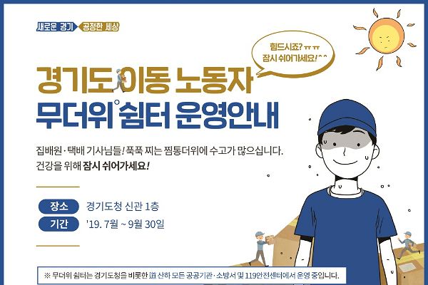 경기도가 집배원, 택배기사 등 이동노동자들을 위한 폭염 대책의 하나로 경기도청사와 공공기관에 무더위 쉼터를 조성한다.