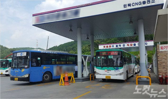 휴식을 마친 노선버스들은 출발을 앞두고 압축천연가스(CNG) 충전소 앞에 길게 늘어섰고, 연료가 충전된 버스는 하나 둘 차고지를 빠져나가며 운행을 시작했다.