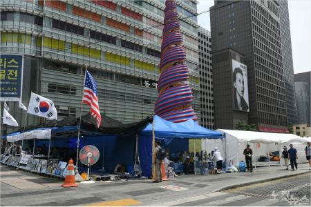 ◆ 박원석> 그런데 그때도 경남도청 앞에서 집회를 하는 시민단체들이 장기간 천막을 치고 도로를 무단 점거하고 농성을 한 게 아니었거든요. 집회조차도 듣기 싫다. 이래가지고 가로막았던 적 있습니다. 그런데 이번에 이제 서울시의 조치는 그런 것과는 좀 다른 거죠.