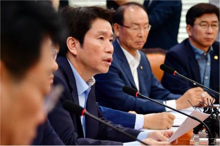 더불어민주당 이인영 원내대표가 2일 오전 국회에서 열린 당 원내대책회의에서 모두발언을 하고 있다. 윤창원기자