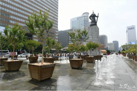 서울시는 우리공화당이 다시 천막을 칠 수 없도록 대형 화분을 설치했다. 이한형기자