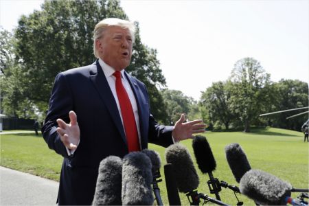 백악관 남쪽 뜰에서 취재진 만나는 트럼프 (사진=워싱턴 /연합뉴스)