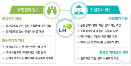 이를 위해 공정거래 자율준수 프로그램을 도입해 규정, 약관 등의 일제 점검으로 내부 불공정 소지를 개선하고, 계약 체결 단계별 불공정 행위 체크리스트 점검을 의무화한다는 게 LH의 계획이다.