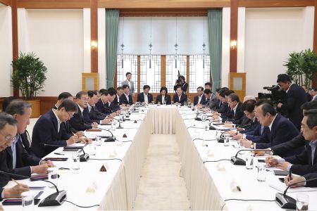 문 대통령과 대기업 총수·CEO 30명이 청와대에 모였다는 상징성을 갖지만, 발언 내용은 익명으로 공개됐다. 자칫 일본 정부를 더 자극할 거란 기업들 우려가 반영된 것으로 보인다.