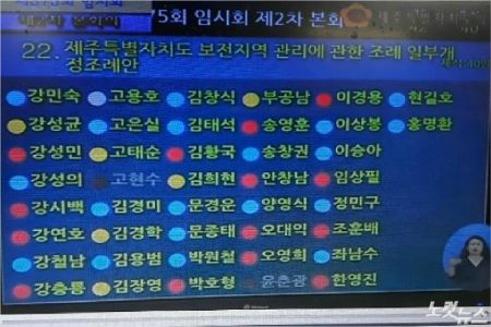 ◆ 김동현> 근데 일단은 기권하신 분들이 있잖아요. 이게 민감한 사안이긴 하지만 보전지역관리조례가 갖고 있는 여러 가지 정치적인, 그리고 현재 현안문제를 풀어갈 수 있는 여러 가지 대안이 될 수도 있다고 얘기하신 분들도 있었는데 아주 첨예한 사안이었습니다. 첨예한 현안문제에 대해서 정치인들은 표로 말하는 거잖아요?
