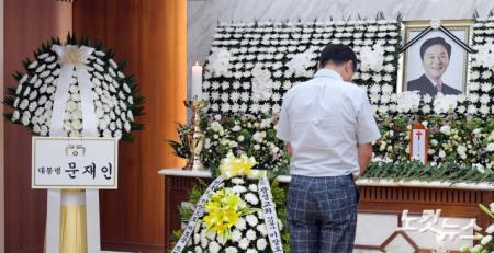 문재인 대통령 근조화환 놓여진 고 정두언 의원 빈소