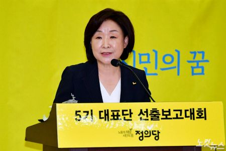 정의당 심상정 신임 당대표가 13일 오후 국회 의원회관에서 열린 5기 대표단 선출보고대회에서 당선 확정 후 대표 수락연설을 하고 있다. (사진=윤창원 기자)
