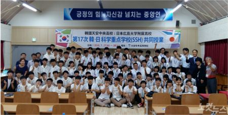 충남 천안 중앙고등학교와 일본 히로시마대학 부속 고등학교 학생들이 인연을 맺은 것은 지난 2010년으로 거슬러 올라간다. 그해 8월 시작된 양국 학생들의 공동수업은 겨울방학인 1월엔 히로시마대 부속고에서, 여름방학인 8월엔 천안 중앙고에서 진행하고 있다.