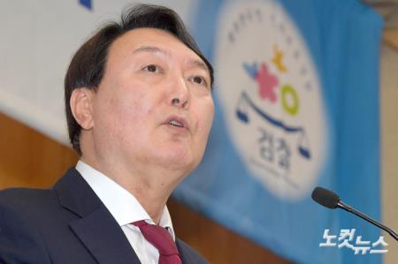 윤석열 신임 검찰총장이 25일 서울 서초구 대검찰청에서 취임사를 하고 있다.