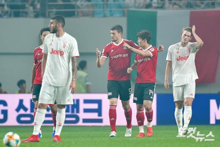 26일 서울월드컵경기장에서 열린 팀 K리그와 유벤투스FC 친선경기에서 전반전 팀의 첫 번째 골을 성공시킨 오스마르(팀 K리그)가 기뻐하고 있다.