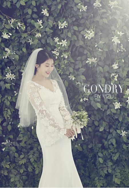 2일 공개된 웨딩화보 속 강유미는 청순하면서 우아한 자태를 뽐내고 있다. 예비신랑은 듬직한 뒷모습만 공개됐다.