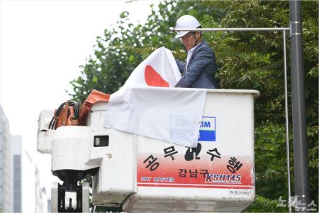 이날 강남구청은 일본 정부의 화이트리스트 한국 제외 조치에 대한 항의표시로 테헤란로·영동대로·압구정동 로데오거리 일대에 게시된 일장기를 모두 철거했다.