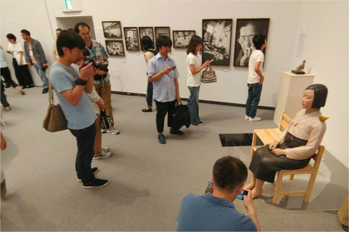 '아이치 트리엔날레' 행사 주최 측은 지난 4일 일본 내 우익 진영의 테러 예고와 협박성 항의가 잇따른다는 이유로 가벽을 설치하고 전시를 중단했다.