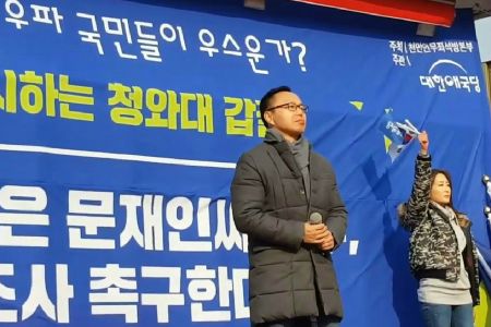 이 단체 대표인 김은구 트루스포럼 대표는 펜앤드마이크 정규재TV, 조갑제 TV, 태극기 집회에서 나와 문재인 정부를 비판하고 있다. 올해 1월 태극기 집회에 참석해 무대에 오른 김은구 트루스포럼 대표의 모습. (사진=애국저널 유튜브 영상 캡처)