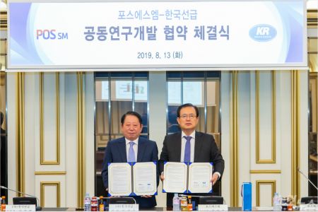 한국선급(KR, 회장 이정기)은 13일 포스에스엠(POS SM,대표이사 최임엽)과 선박 운항성능 평가와 발전기 상태기반 예지보전(CBM) 기술을 공동개발하기 위한 협약을 체결했다고 밝혔다.