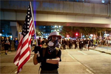 성조기 앞세운 홍콩 송환법 반대 시위대 (사진=홍콩 AFP 제공/연합뉴스)