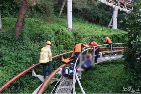 신고를 받고 출동한 소방대원은 A 씨를 구조한 뒤 놀이기구 출발 지점 바로 뒤편 아래에서 절단된 다리를 발견했다.