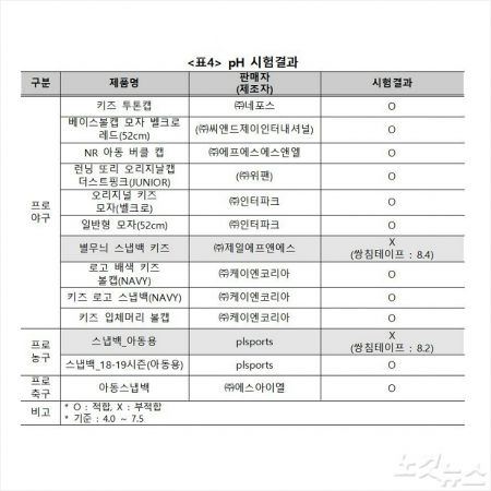 한국소비자원은 시중에 유통‧판매되고 있는 프로스포츠 굿즈 어린이 모자 13개 제품을 조사한 결과 일부 제품에서 안전기준을 초과한 폼알데하이드와 pH가 검출됐다고 22일 밝혔다.