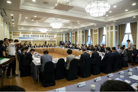 경기도가 20대 마지막 정기국회 개원 직후인 3일 개최한 '경기도 국회의원 초청 정책협의회'에 여야 의원들이 참석해 예산 확보 등 경기도 발전에 힘 모을 것을 다짐했다.
