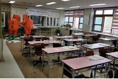 이날 오후 1시쯤 폼알데히드를 측정한 결과(허용 기준 0.3ppm) 과학실 안은 0.6ppm, 교실 밖은 0.5ppm으로 나타났다.