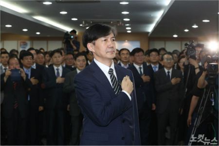 9일 열린 조 장관의 취임식에는 관례와 달리 서울중앙지검장과 대검찰청 간부들이 참석하지 않았다. 서울중앙지검에서 조 장관의 가족에 대한 수사가 진행 중인 상황을 고려한 것으로 풀이된다.