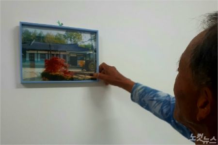박만호(72) 할아버지가 예전에 살던 집을 찍어둔 사진을 가만히 바라보고 있다. (사진=유선희 기자)