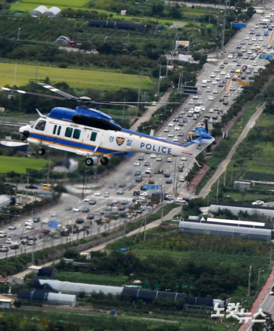 추석연휴 앞두고 고속도로 교통상황 점검하는 경찰청 헬기