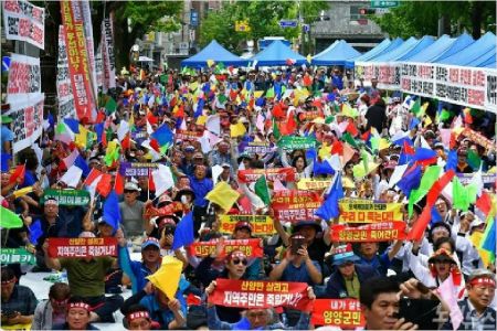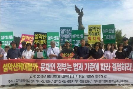 설악산 오색케이블카 추진위원회가 지난달 27일 청와대 앞에서 오색케이블카 조기착공 촉구 집회를진행했다.(사진=양양군청 제공)