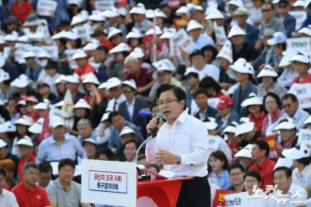 15일 오후 서울 여의도 국회 본청 계단에서 열린 '자유한국당 추석 민심 보고대회'에서 자유한국당 황교안 대표가 발언을 하고 있다. (사진=이한형 기자)