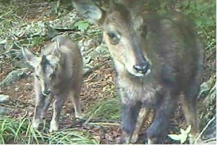 지난 2018년 7월 '오색케이블카 노선 4~5번 지주 사이'에서 촬영한 산양들. (사진=설악산국립공원지키기국민행동 제공)