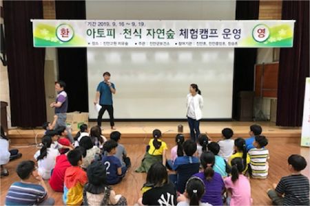 진안고원 치유숲에서 진행되는 이번 캠프는 '아토피 걱정 뚝! 재미있는 마술 레크레이션'과 '아토피 마왕을 잡아라'의 자연숲 그린환경놀이 등 학생 눈높이에 맞춘 체험학습 프로그램으로 참여와 흥미를 높였다.
