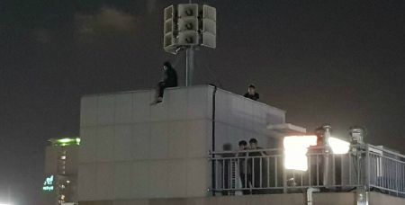 경동도시가스 안전점검원이 울산시의회 옥상에서 고공농성을 벌이고 있다. (사진=공공운수노조 울산본부 제공)