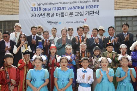 아시아나항공은 18일 몽골 울란바토르 성긴하이르 항구에 위치한 83번 초등학교에서 '제1회 몽골 아름다운 교실' 행사를 가졌다고 19일 밝혔다.