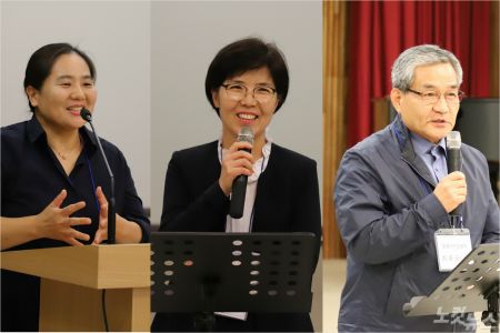 포럼에는 포항지역 특수사역자 10여 명이 초청됐다. (좌측부터 한숲농아인교회 김소향 사모, 해병대문덕교회 최경자 전도사, 포항이주민센터 최종근 선교사) (사진=포항CBS)