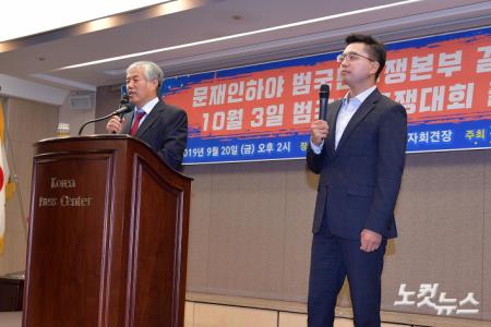 20일 오후 서울 중구 한국프레스센터에서 열린 '문재인하야 범국민투쟁본부 결성식'에서 전광훈 목사가 발언하고 있다.