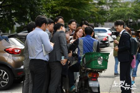 배달원에게 질문하는 취재진