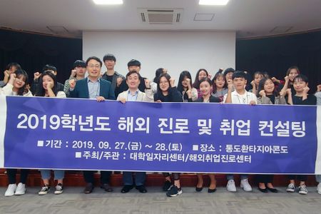 또 지난 27일~28일 1박 2일간 재학생과 졸업생 25명을 대상으로 양산 통도환타지아에서 해외 진로과 취업 컨설팅을 진행했다.