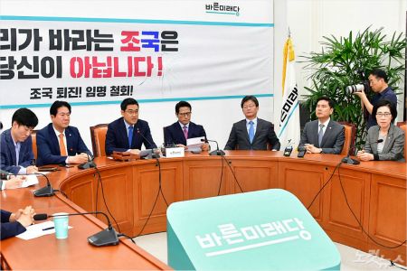 ◆ 지상욱> 보죠, 당연히 지금도 얘기를 하고 있으니까. 그러면 원내 투쟁이 보수 정당 2개에서 보수 정당 하나로 될 수 있는 겁니다. 그것에 대한 후폭풍이나 실질적인 그 미래에 대해서도 우리가 신중하게 볼 수 있기 때문에 신중해야 된다, 좀 봐야 된다. 어떤 것이 정말 문재인 정권의 폭주를 막고 그리고 이런 조국 장관의 이런 사태를 우리가 효율적으로 막을 수 있는 거냐 하는 범국민적인 보수층을 지지하는 유권자 측에서도 들여다볼 필요가 있는 거죠.
