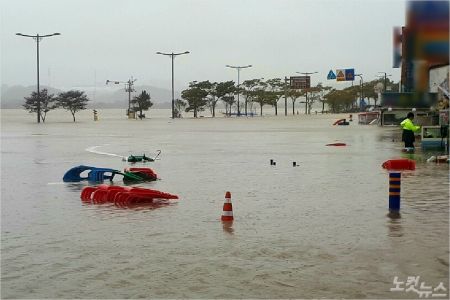 경포호수는 거대한 진흙탕으로 변한 채 점점 차올라 도로 인근까지 위협하고 있었다. 또 물살은 무서운 속도로 요동치고 있었다. 경포호수로 가는 길목 중간중간에는 일부 차들이 침수된 채 그대로 방치된 모습도 눈에 띄었다.