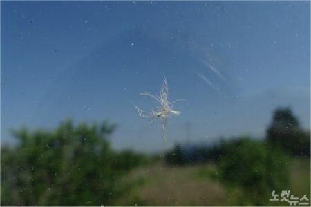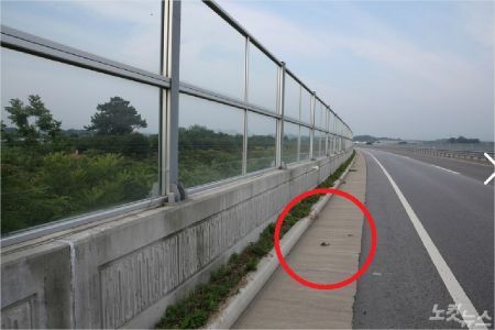 새에 부딪혀 금이간 익산 함열읍 23번국도 방음벽. (사진=네이처링)