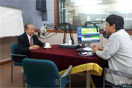 강원영동CBS 스튜디오에서 인터뷰를 하고 있는 김동호 위원장. (사진=유선희 기자)