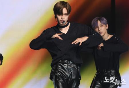 보이그룹 에이비식스(AB6IX)가 7일 오후 서울 동대문구 경희대학교 평화의전당에서 열린 첫 정규앨범 '6IXENSE(식스센스)' 발매 기념 쇼케이스에 참석해 화려한 공연을 선보이고 있다.