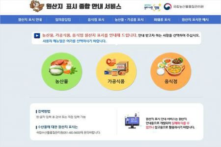 농관원은 "원산지 표시 종합 안내 서비스는 원산지 대상품목 확대와 표시방법 변경으로 인한 영업자의 어려움을 해소하고 소비자가 원산지 표시제를 보다 쉽게 알 수 있도록 하기 위해 제공하게 됐다"고 설명했다.