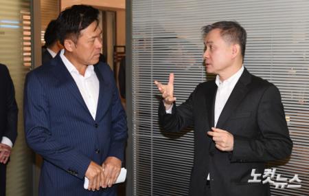 대화하는 박정호 SK텔레콤 사장-하현회 LG유플러스 부회장