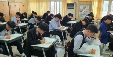 마지막 고3 전국연합학력평가 시험 보는 세광고 학생들 (사진=충북교육청 제공)